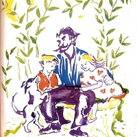 Starac je znao, da se Hlapić šali, ali mu se tako svidio, da je prestao jadikovati, pače se i nasmijao.