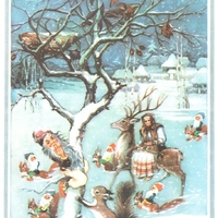 Die Hausgeistchen setzten die Alte nun auf den Hirsch, bestiegen die Eichhörnchen, und fort ging es gegen den Striborwald.