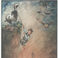 Otvori Jagor oči i ugleda nad sobom riđu bradicu i dva vita roga i još dva oka, da su dva anđela božja, ne bi mu milija bila. Skoči dijete, digne ruke i reče: