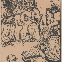 A na rudini, na klenu najvišemu, čeka baka još od tvrdog mraka. Čeka ona zoru, k'o ozebo sunca, — još što bi zoru čekala, al što čeka čupavog Toporka! I baš u neke baka sa one visine klen promjerila i počela da misli: — "Što li je mene, staru, na tu visinu dalo!"