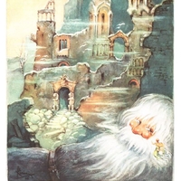 Volle sieben Tage und sieben Nächte jagte der Rappe so mit Kosjenka dahin. Im Morgengrauen des achten Tages langen sie endlich im Herzen der Ebene an. Im Herzen der Ebene stand mit verfallenen Mauern die fürchterlich große Stadt Legengrad und darin herrschte eine ganz grimmige Kälte.