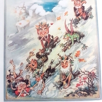 Als alles fertig war, gingen sie weit ins Gebirge, um Altvaters Hilferufe nicht hören zu können. Sie nahmen sich vor, das ganze große Bergland zu umgehen und nicht vor Morgenanbruch zurückzukehren. Bis dahin war alles vorbei: Wisso und seine Hütte mußten verbrannt sein.
