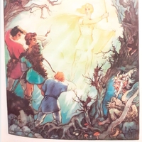 Schreck und Staunen ließ die Brüder erstarren, jener Lichtglanz aber glitt vom Berge herab. leuchtete näher zu über einem Felsblocke wieder auf, noch näher dann über dem Wipfel einer uralten Linde und endlich erstrahlte er, hell wie das lauterste Gold, gerade vor ihnen. Und sie wurden eines wunderschönen Jünglings in glänzender Kleidung gewahr, den ein goldener Mantel gleich einer goldenen Fahne umwehte. Die Brüder vermochten ihm nicht ins Antlitz zu sehen, sie deckten aus Angst und Ehrfurcht die Hände über die Augen.